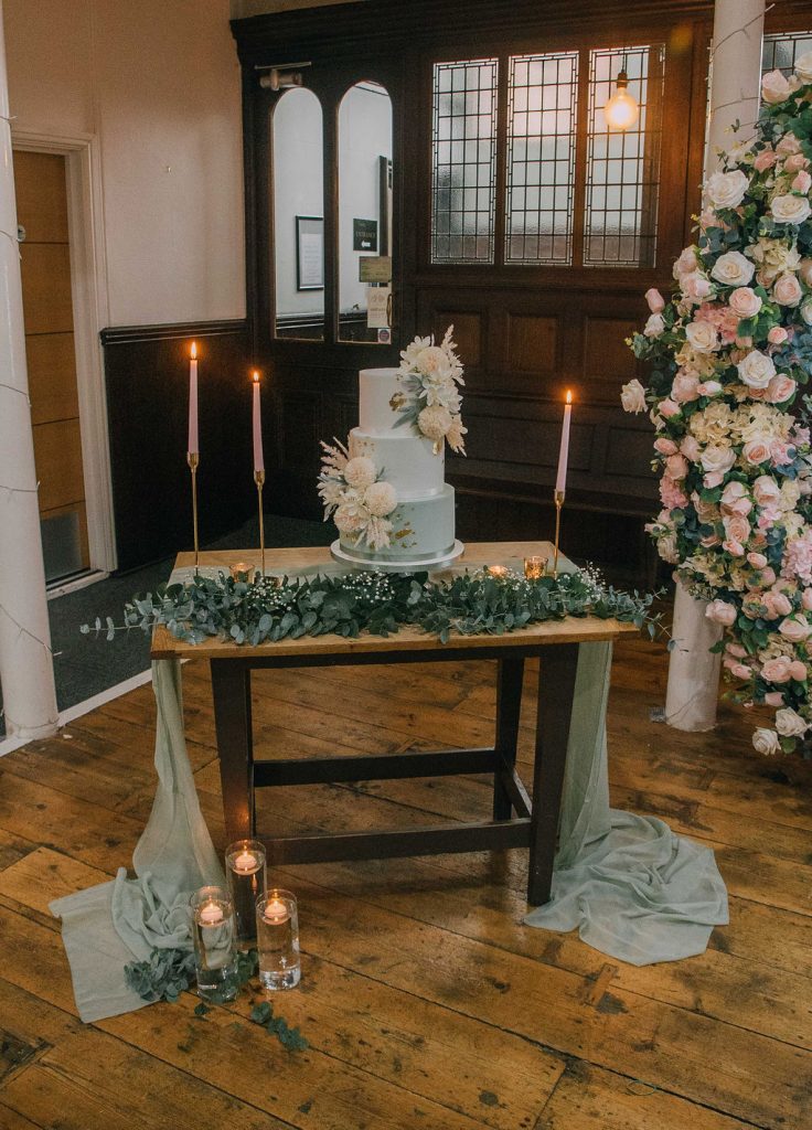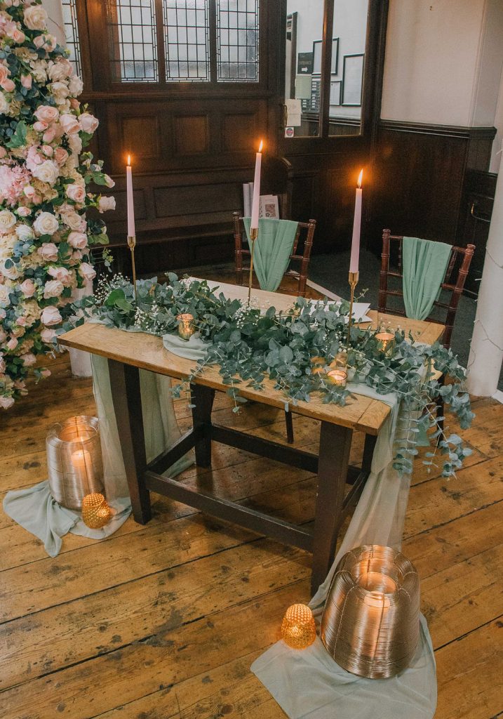 After visiting Confessions for the first time, it became obvious to us what colour palette to use – Blush, Sage Green & Gold. And why? You only need to look up! The high vaulted ceilings above the beautiful stained glass windows use both blush and sage green to great effect.