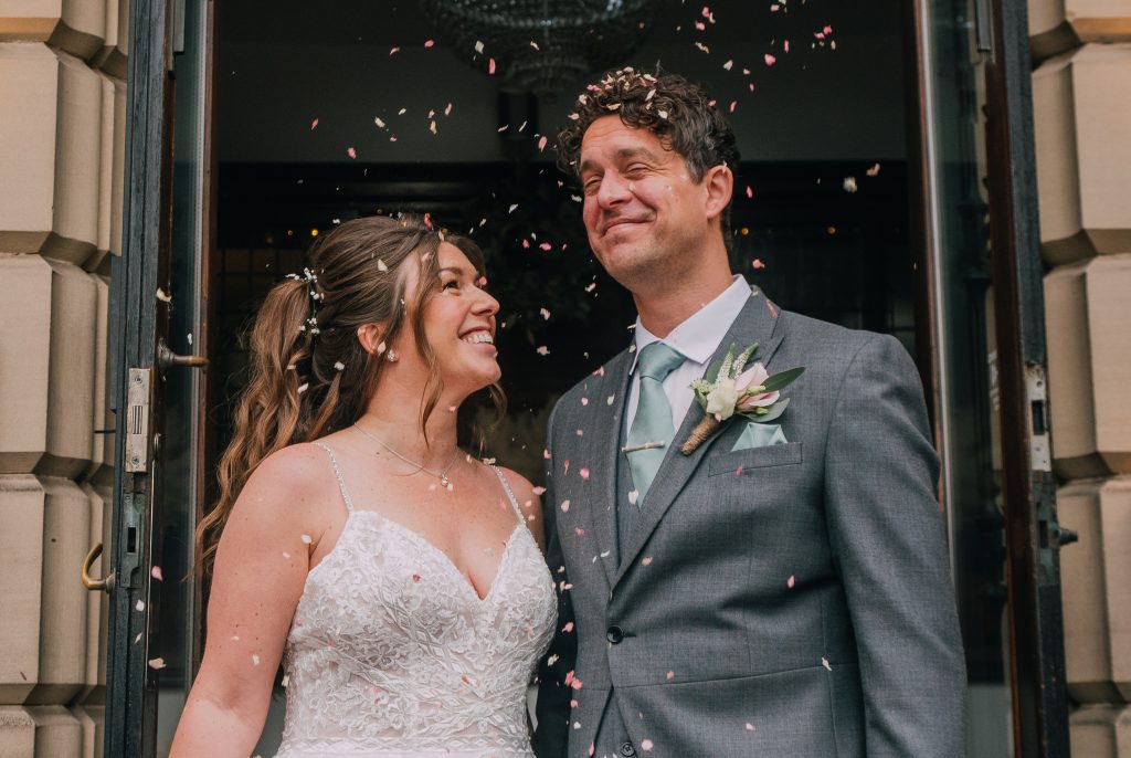Providing the dresses were the fabulous ladies from Tiffany Jordan Bridal, Rebecca wore two styles from different designers – Quest by Evie Young & Ivory by Ronald Joyce, both of which worked incredibly well with the whole theme. Richard was styled by the wonderful Jon Paul Menswear, a mix of grey suits and colour matching tie/pocket square. And who could forget the flowers! Rebecca’s stunning bouquet and Richard’s buttonhole were both created by Sweet Pea Florals.