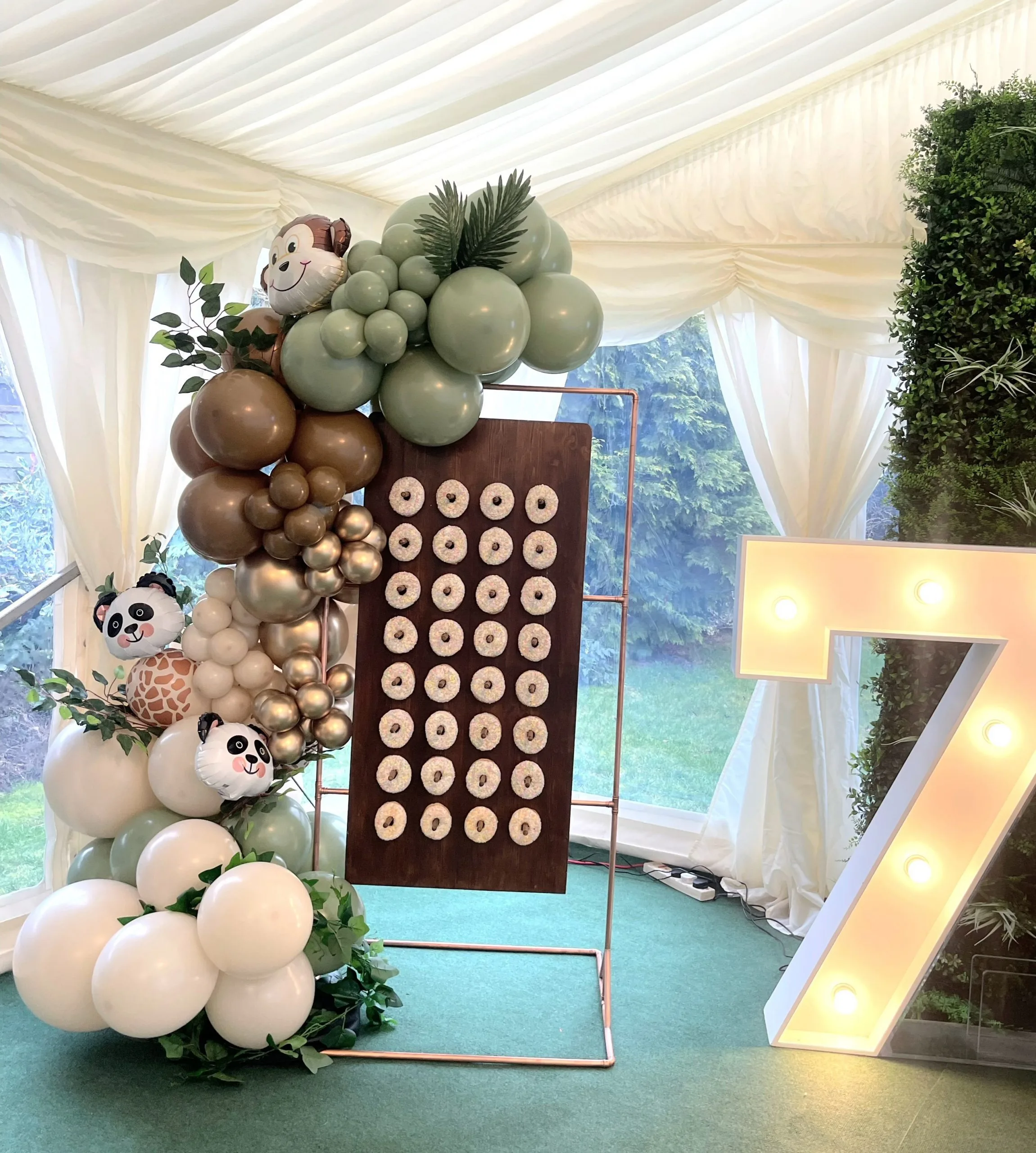 Our beautiful Copper Donut Wall is not something you’ll find elsewhere! Custom made from copper piping and a solid dark wood board this donut wall can hold either 32 or 64 donuts and will wow your guests!