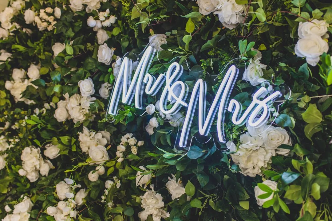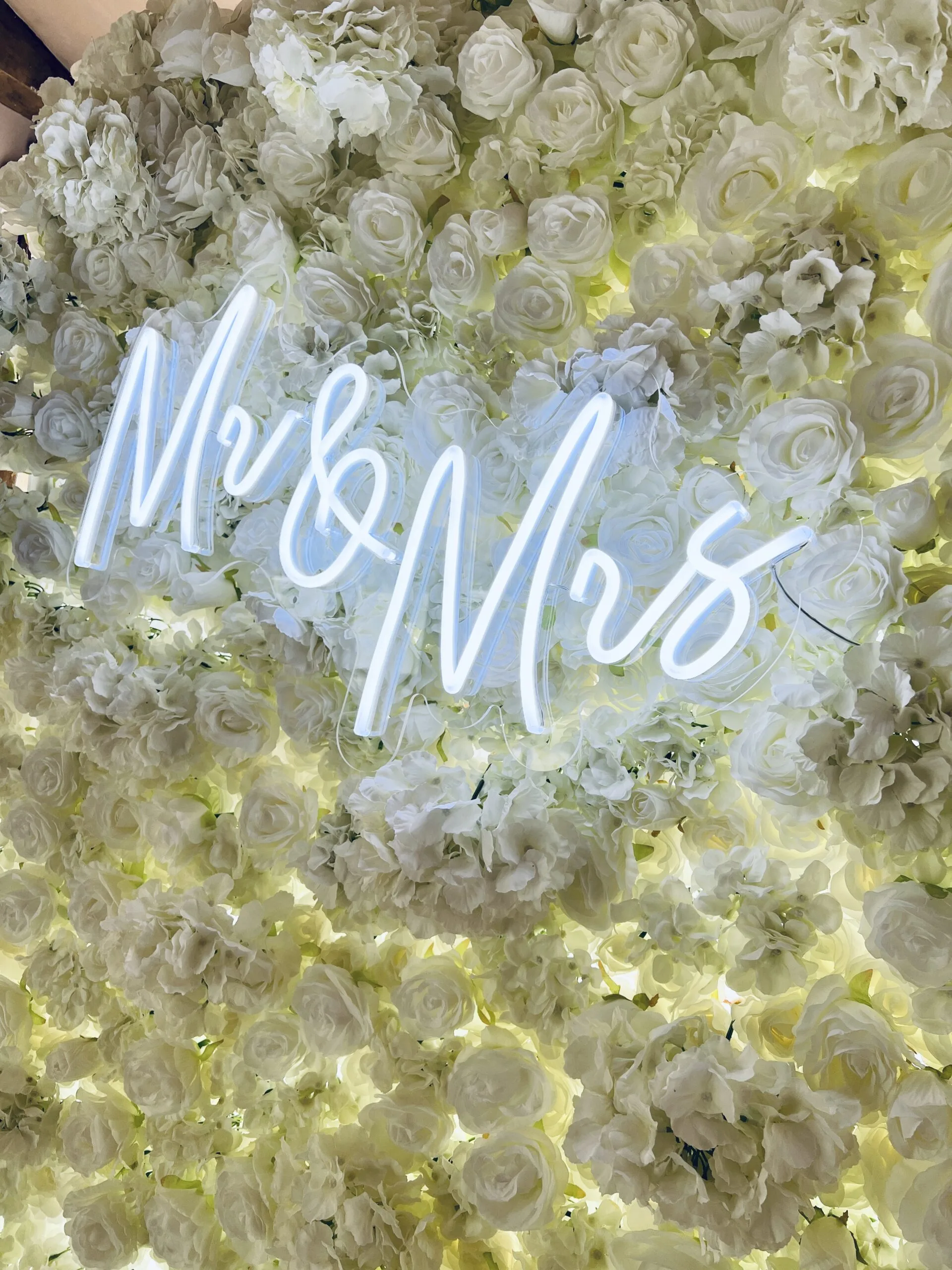 The smaller version of our Mr&Mrs neon looks incredible on our flower walls, measuring 78cm wide.