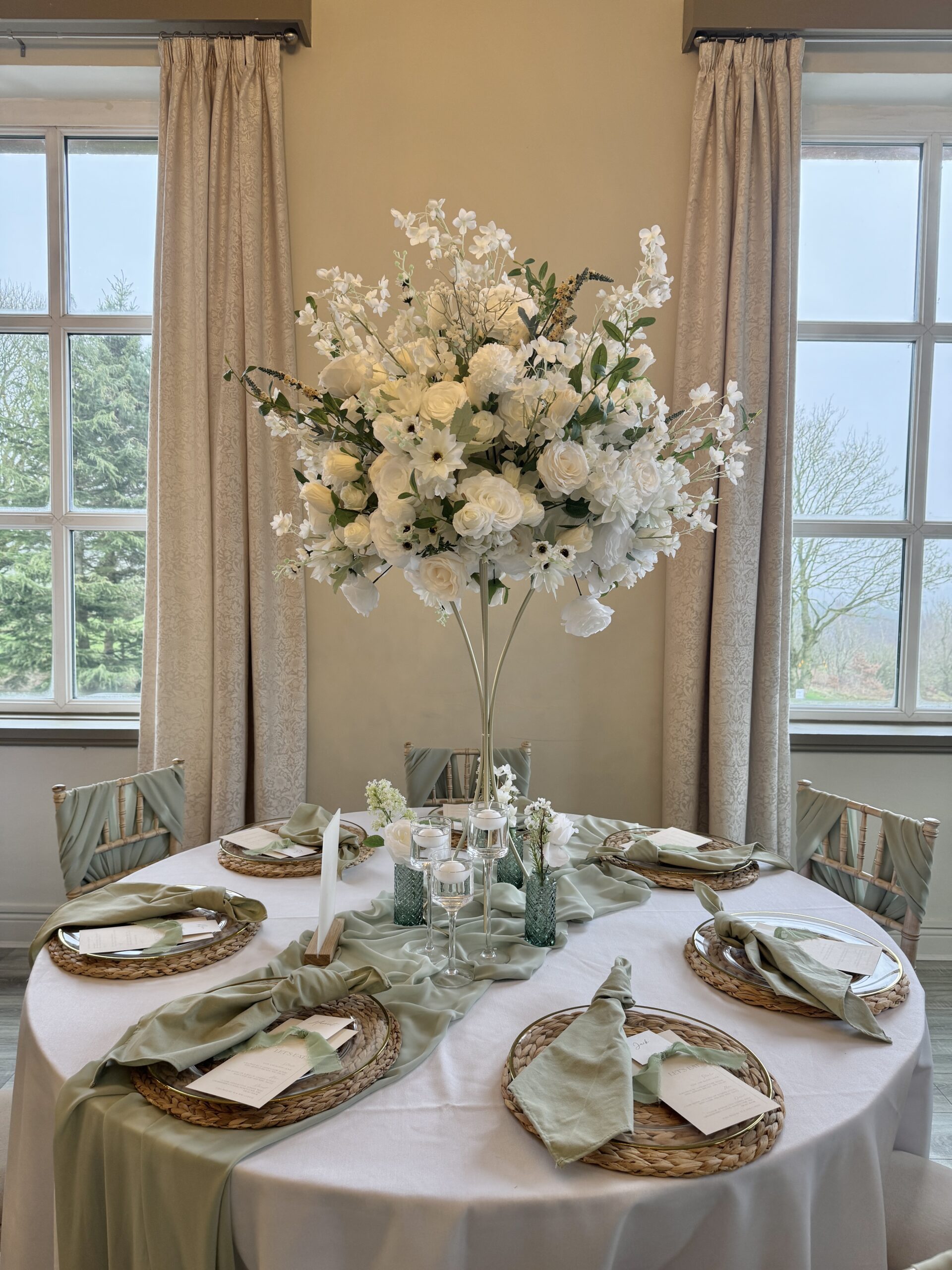 New for 2025, our new Victoria floral centrepieces which will be replacing our ‘Grace’ centrepieces as the new white & greenery high rise domes.