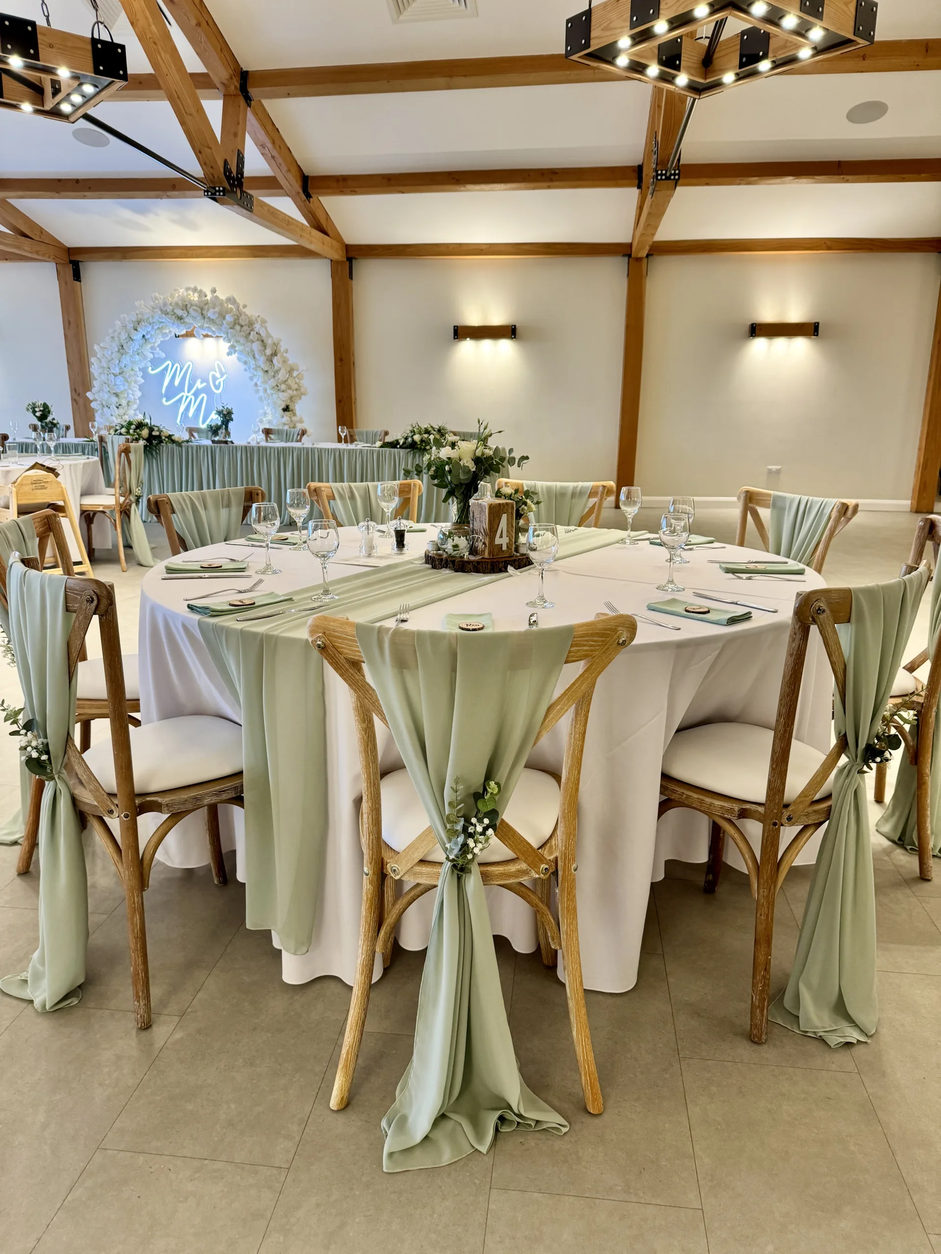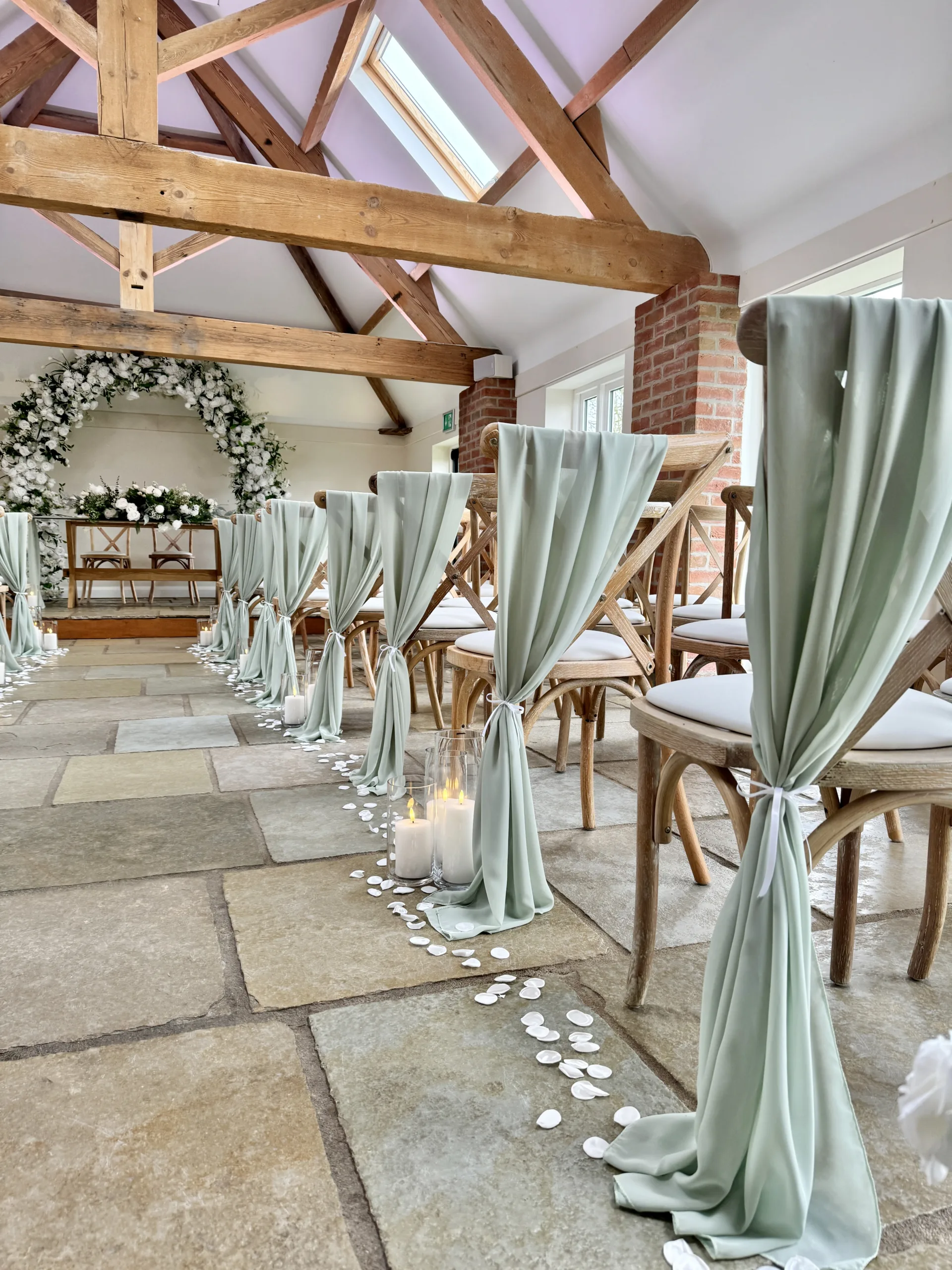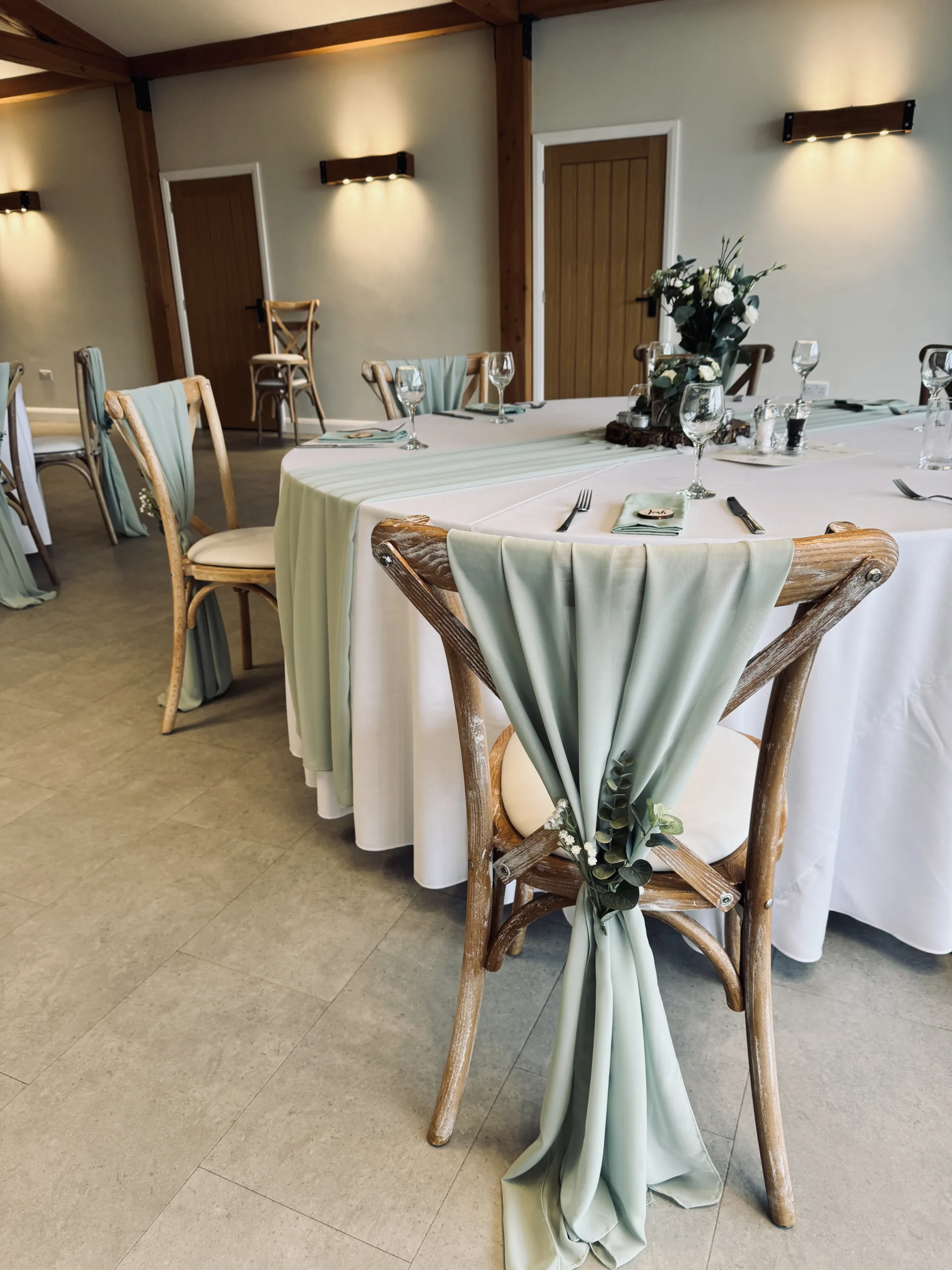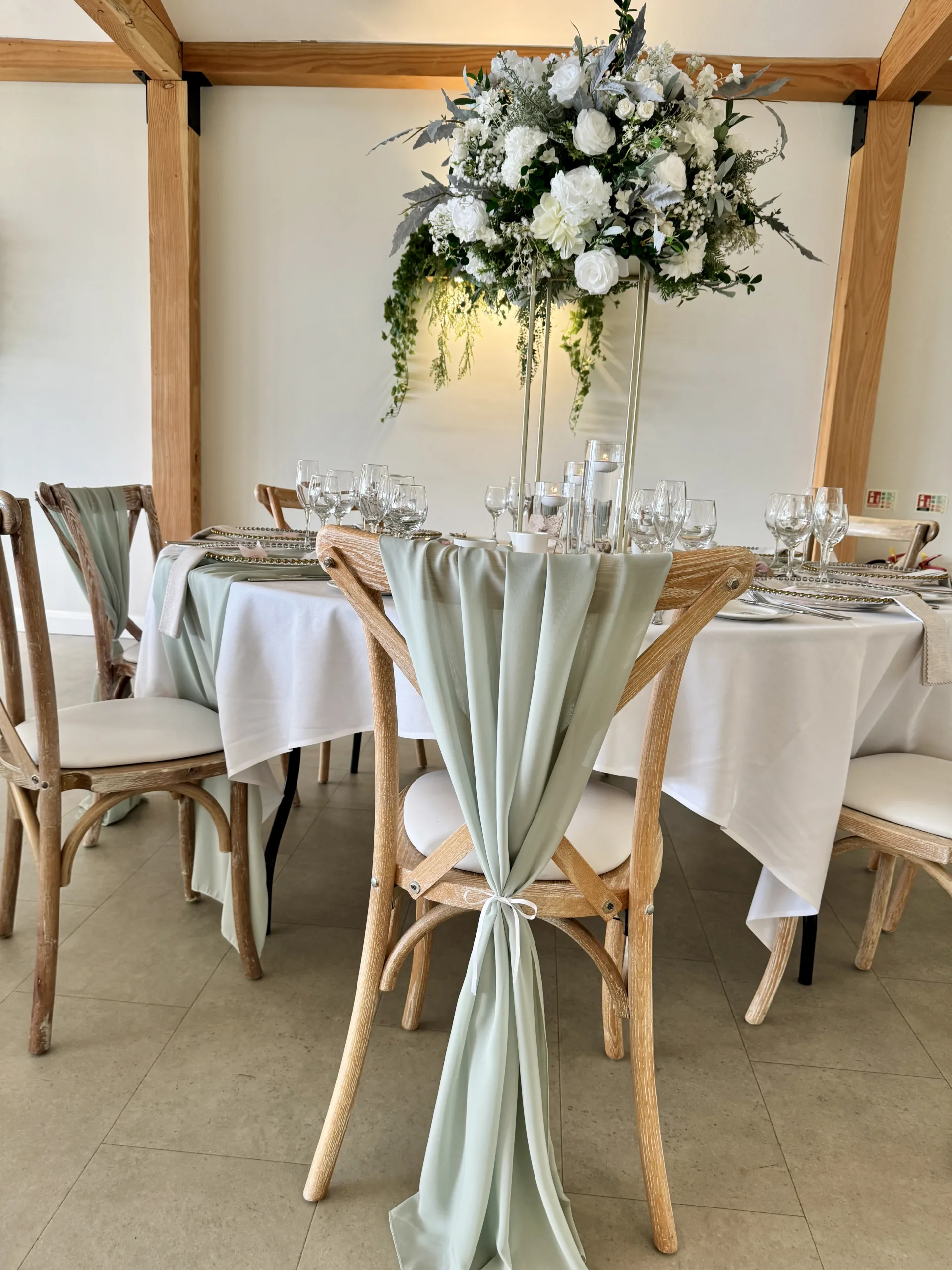 Sage to us will always be an incredible fabric colour for weddings. Soft and romantic sage wedding styling works all year round (honestly it does!) and is so versatile for decorating all sorts of venue types. Mix your sage fabrics with gold, white or even silver to create a completely timeless look for your wedding.