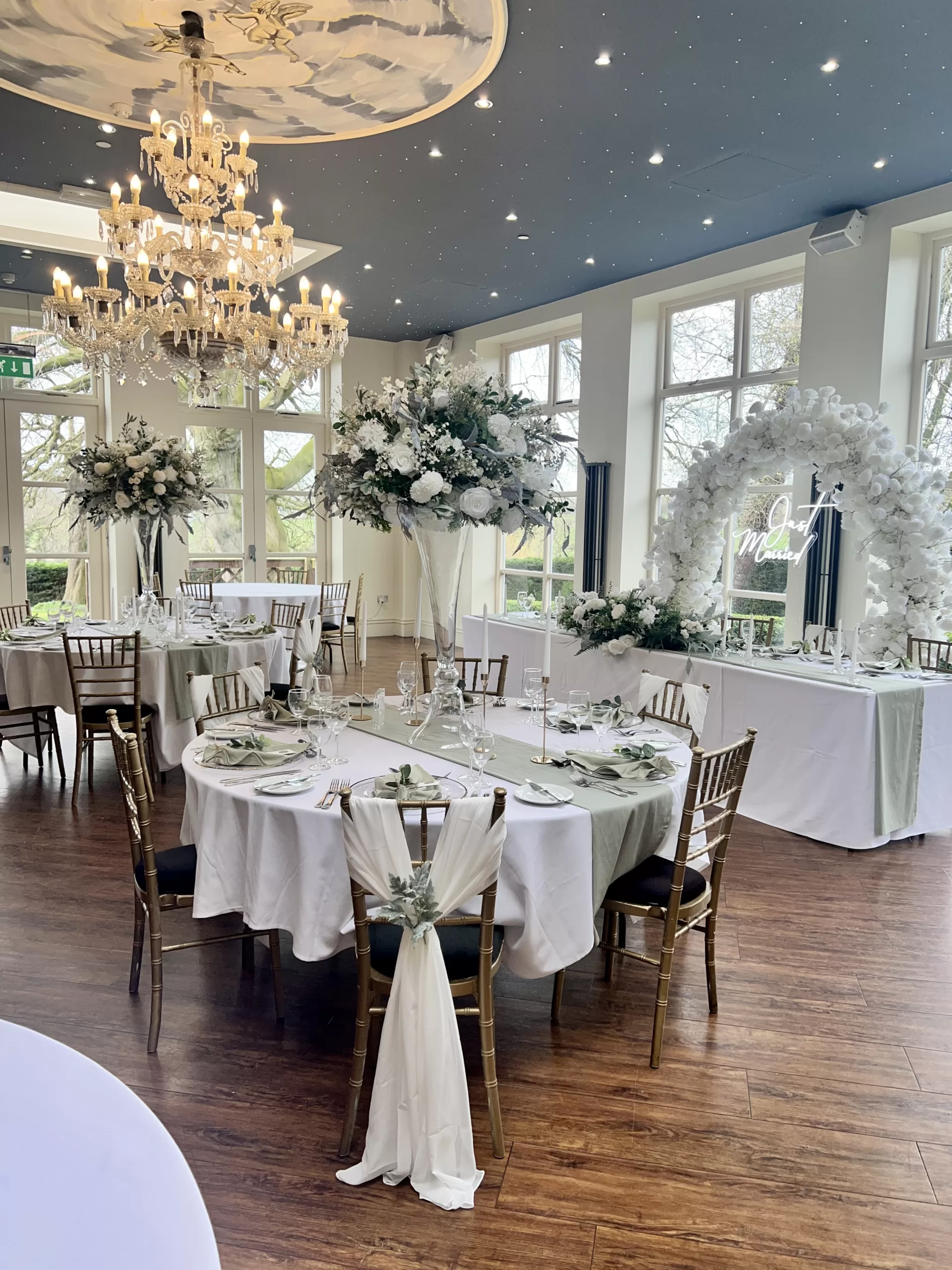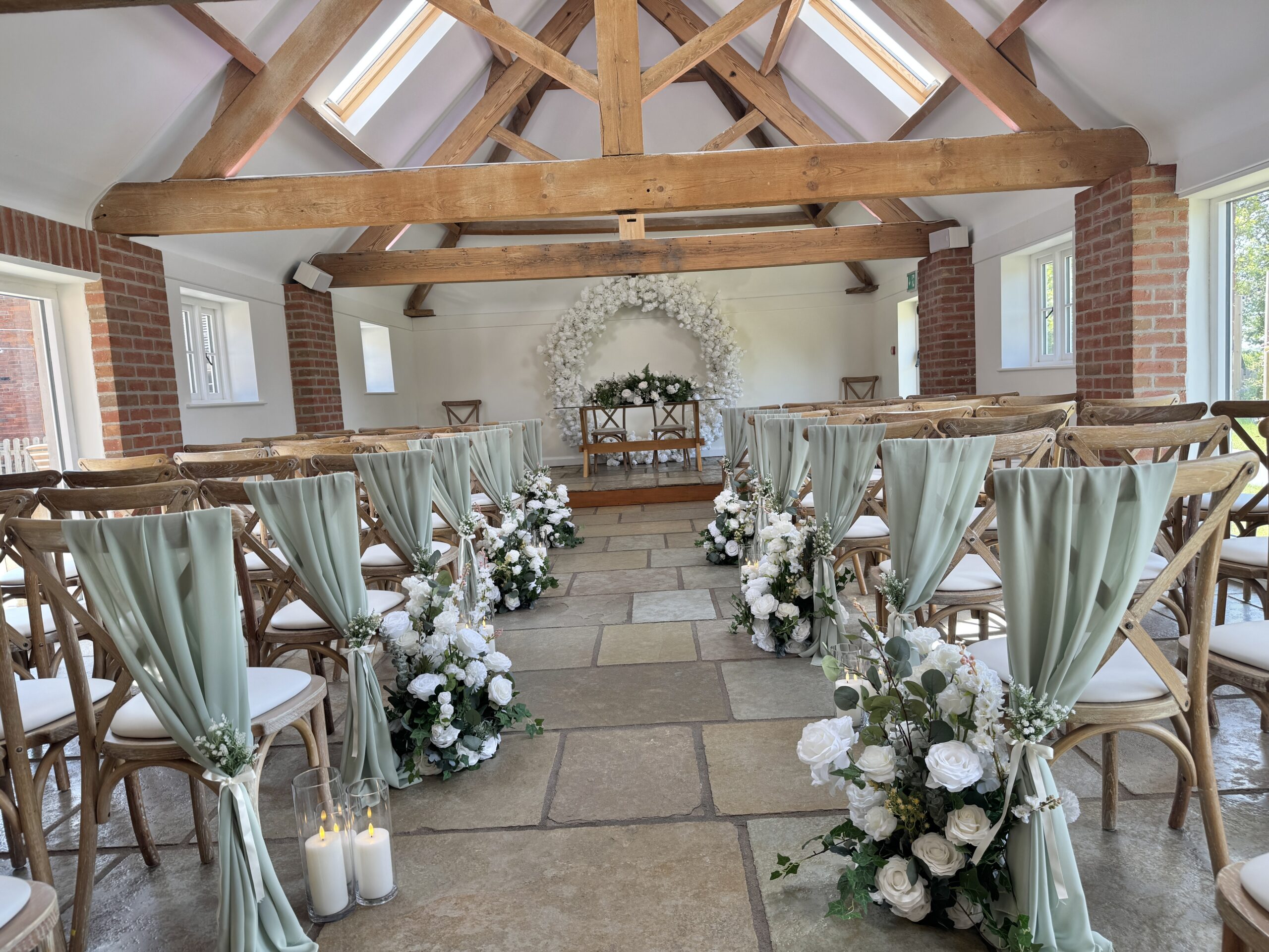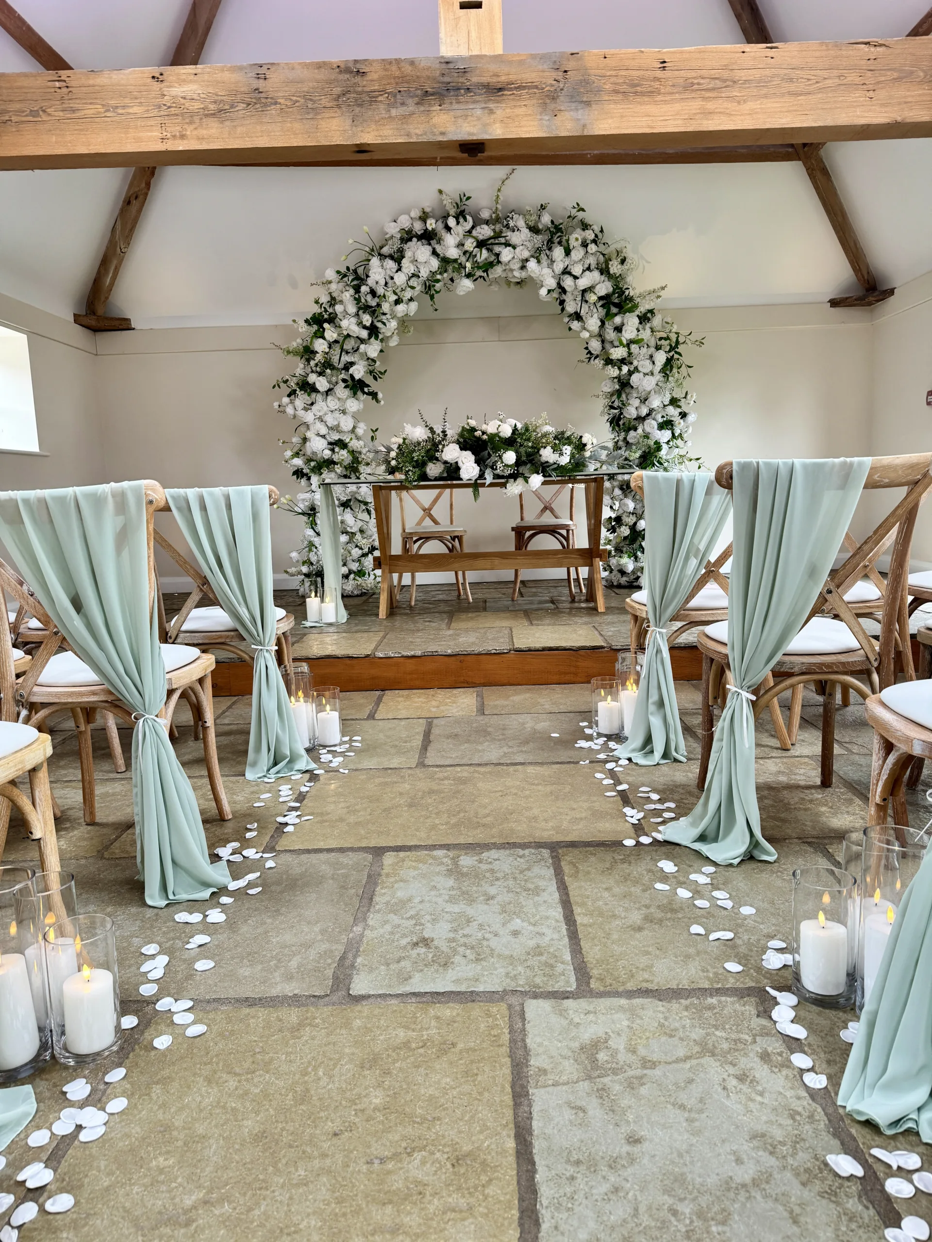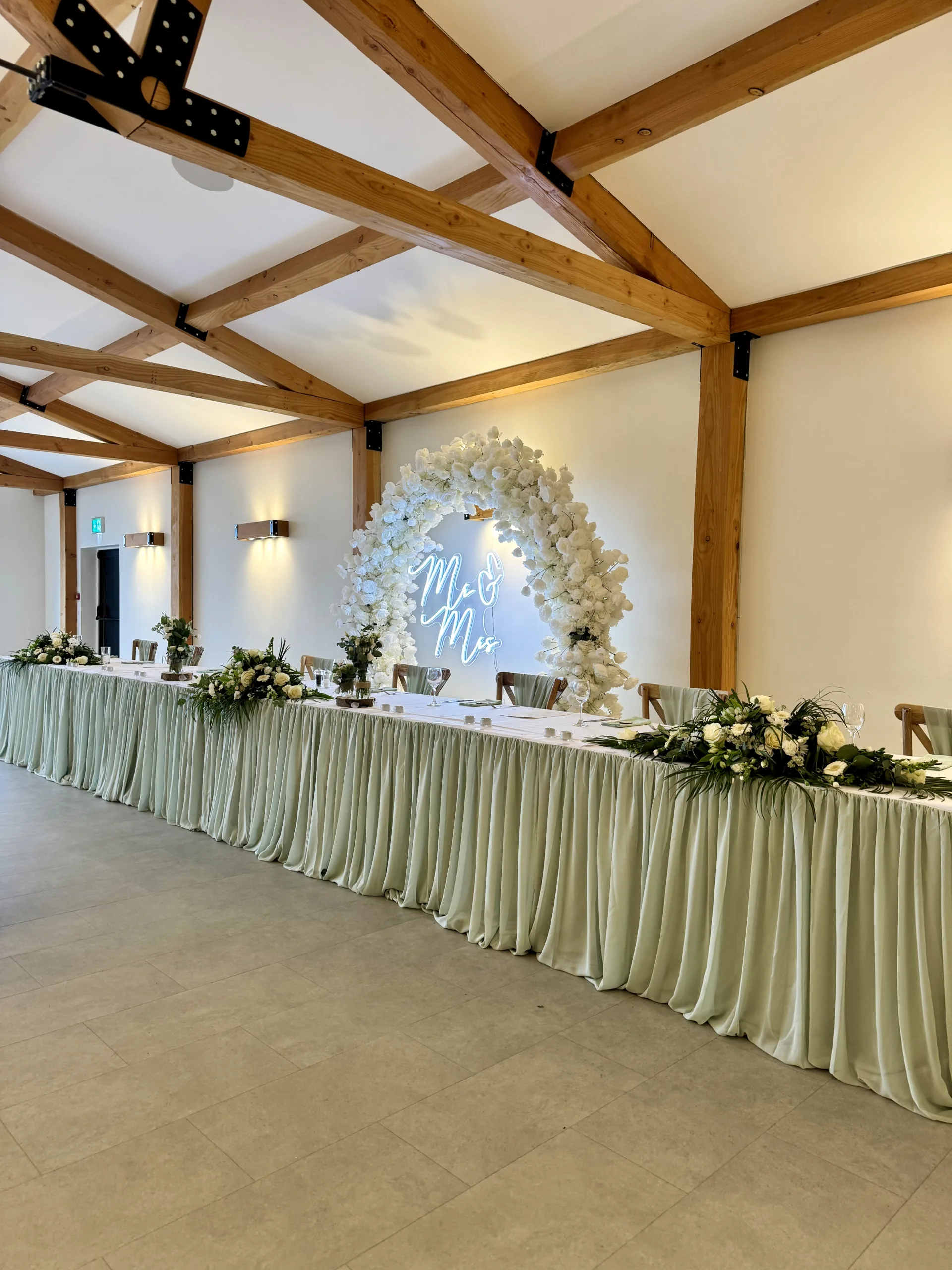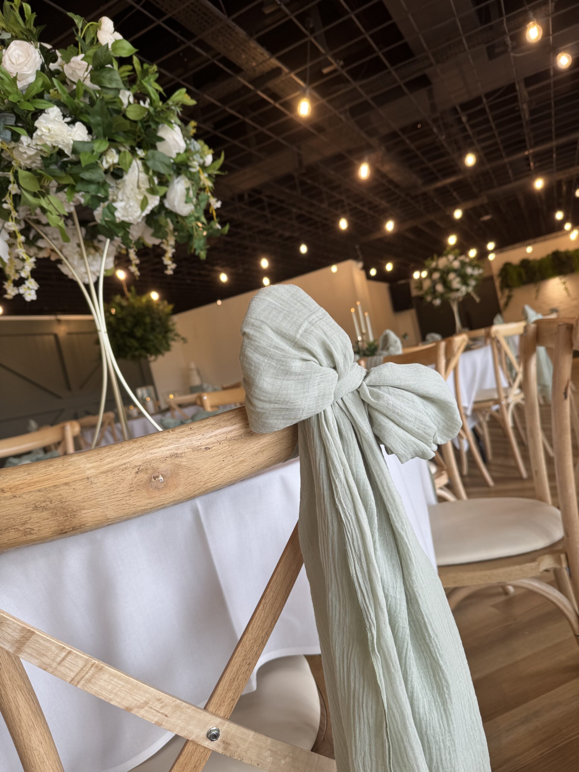 Sage to us will always be an incredible fabric colour for weddings. Soft and romantic sage wedding styling works all year round (honestly it does!) and is so versatile for decorating all sorts of venue types. Mix your sage fabrics with gold, white or even silver to create a completely timeless look for your wedding.